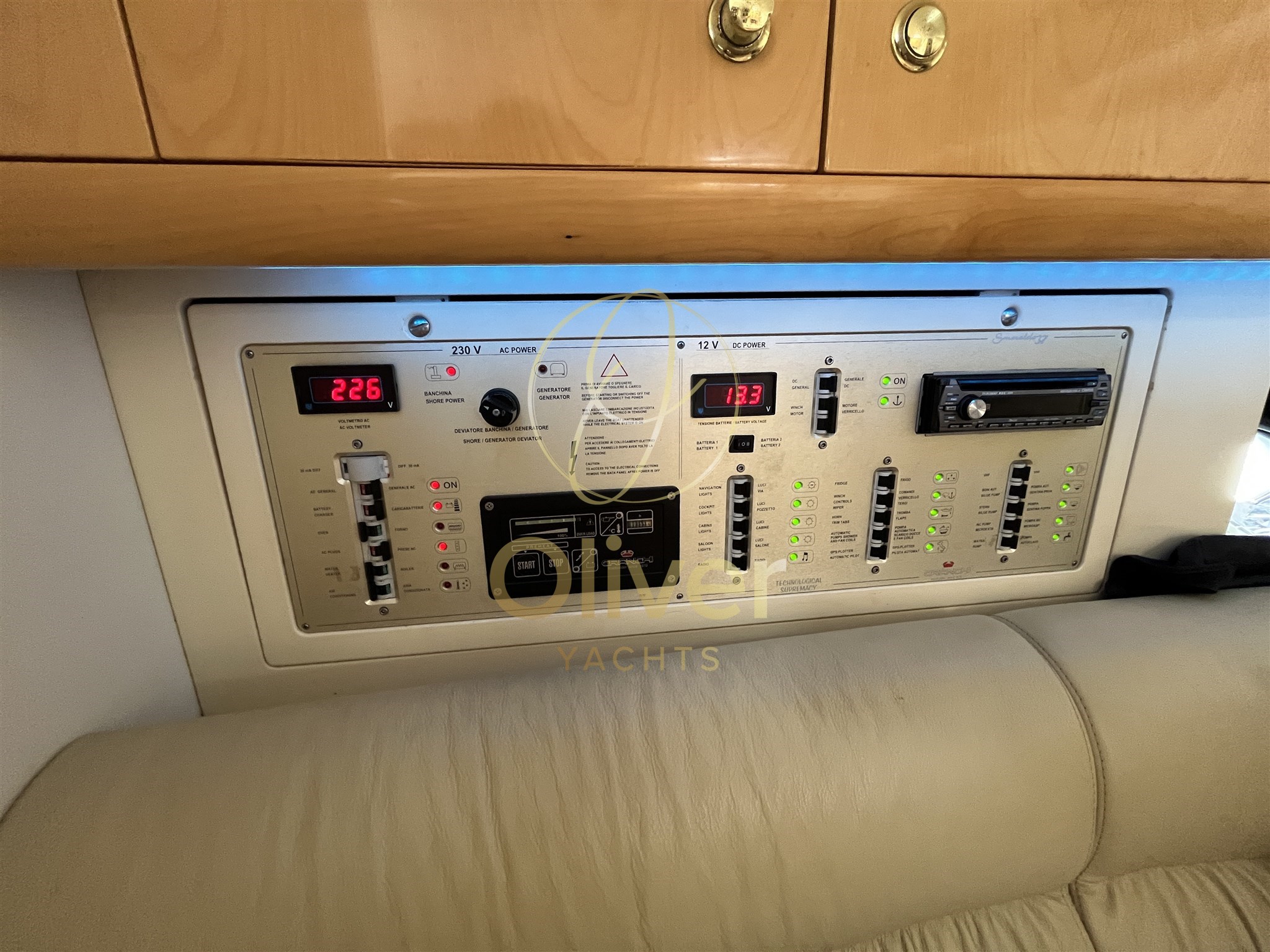 Aria condizionata, Boiler, Indicatore del serbatoio del carburante, Prese interne 12v, Prese interne 220v, WC marino elettrico.