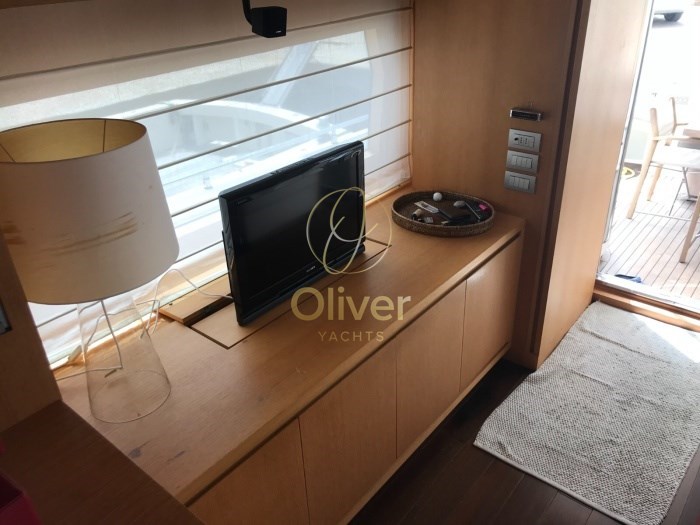 Allarme motore, Allarme sentina, Autoclave, Autogonfiabile, Batterie, Caricabatterie, Doccia esterna, Doppia timoneria, Elica di poppa - stern thruster, Elica di prua - bow thruster, Flap idraulici, Impianto antincendio, Lavaggio catena, Pannelli Solari, Passerella (a scomparsa), Piattaforma, Pompa di sentina automatica, Pompa di sentina manuale, Ponte in teak, Pozzetto Teak, Presa 220V banchina, Rollbar, Salpa Ancore Elettrico, Scaletta da bagno, Tavolo pozzetto, Tender (e FB), 2 x Winch tonneggio di poppa, Winch tonneggio di prua.