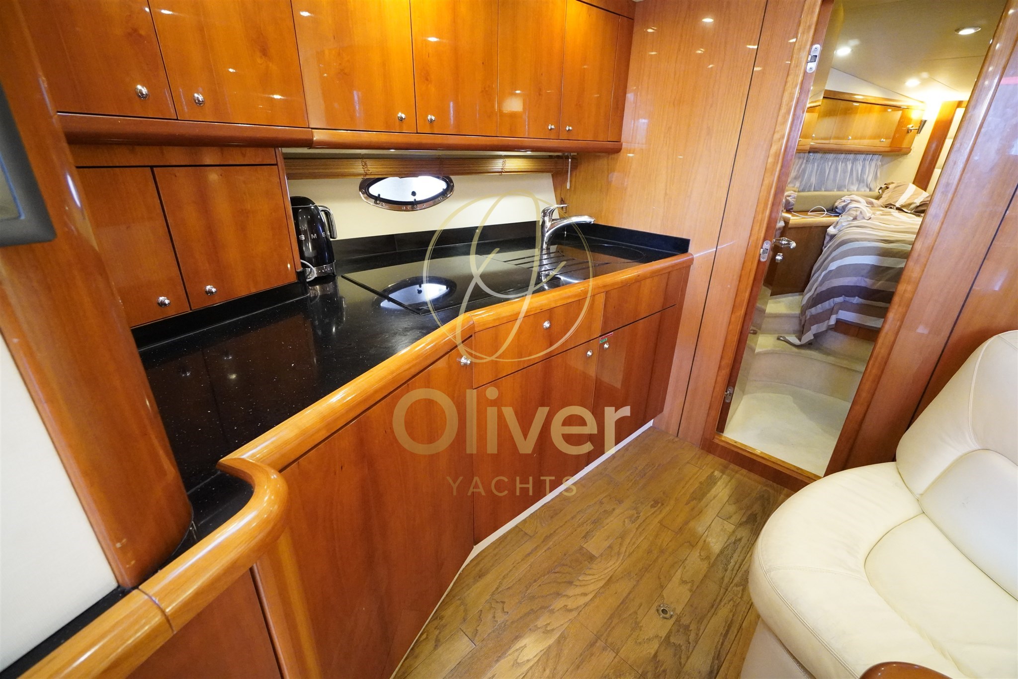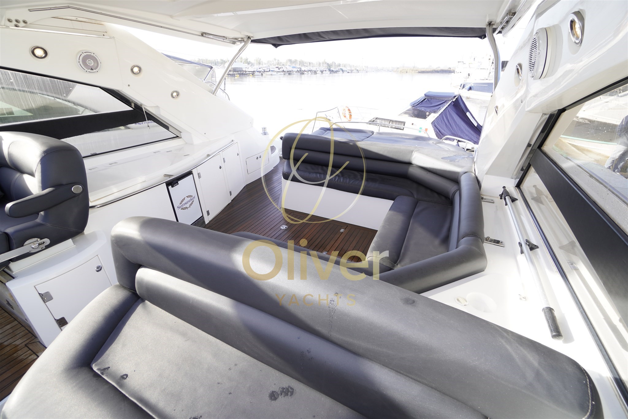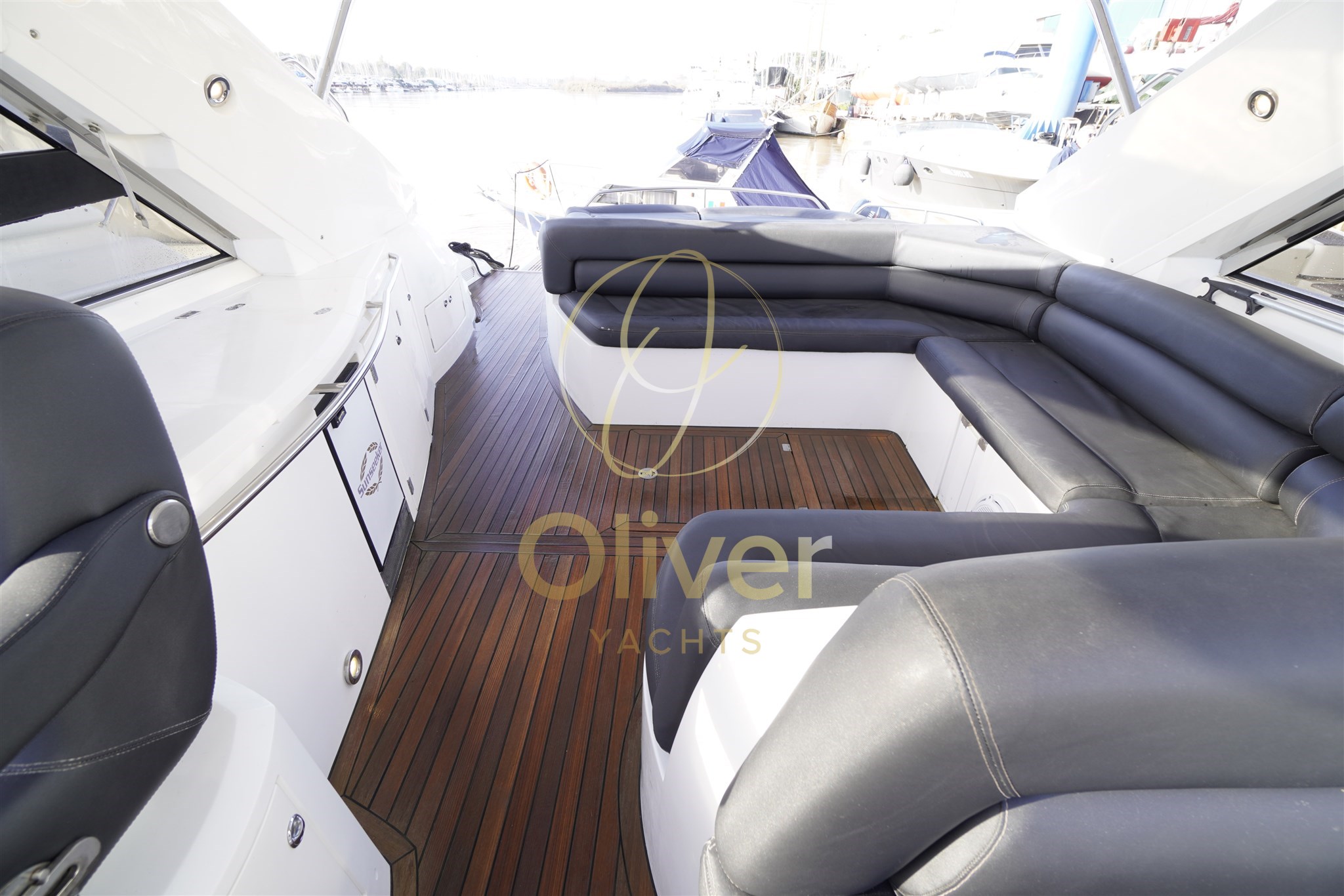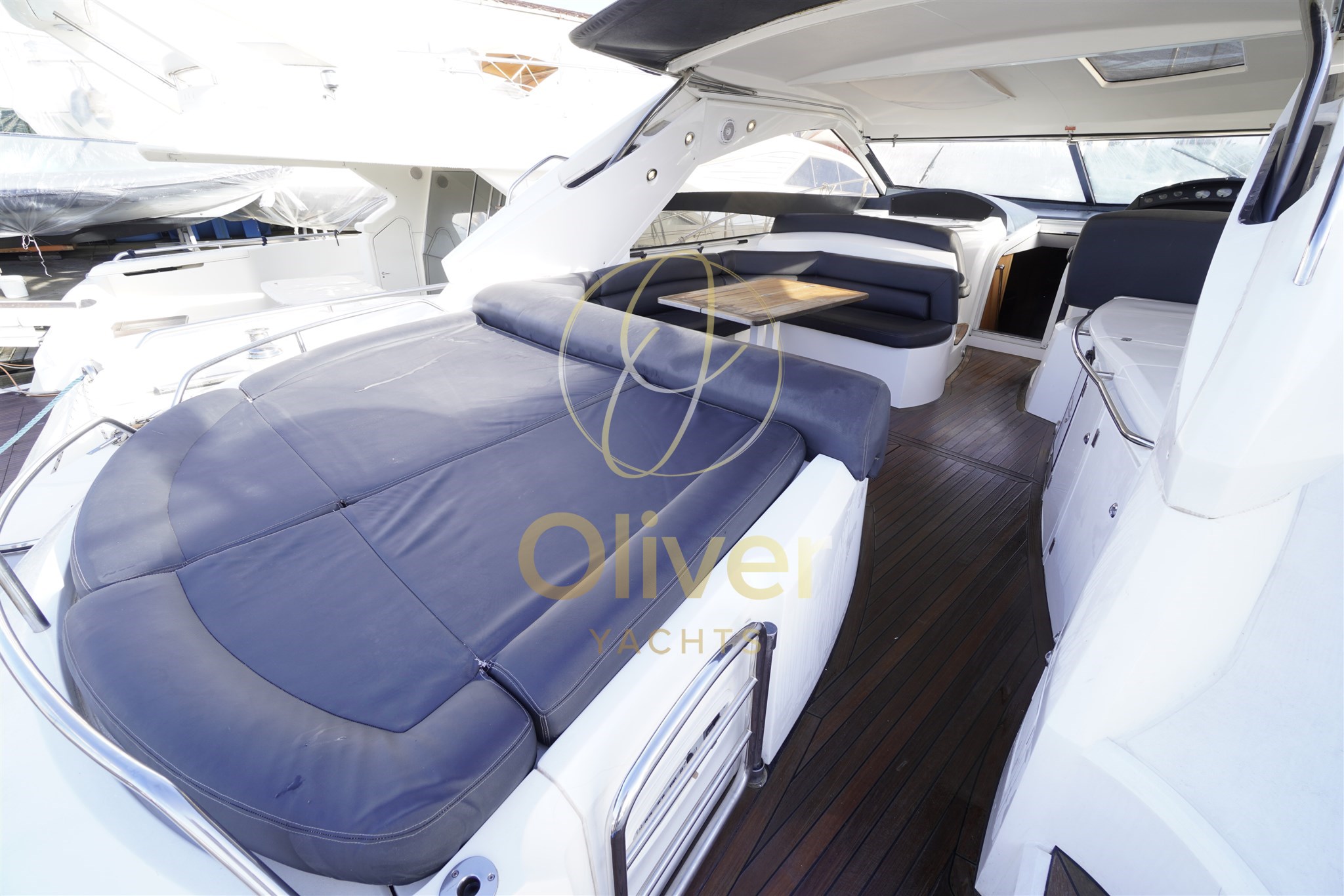 Gli interni del Sunseeker Portofino 53 riflettono pienamente la filosofia del brand: eleganza sobria, materiali marini di qualità e spazi ben sfruttati. La struttura è realizzata in compensato marino, sinonimo di robustezza e durata nel tempo, ideale per un utilizzo armatoriale continuativo.